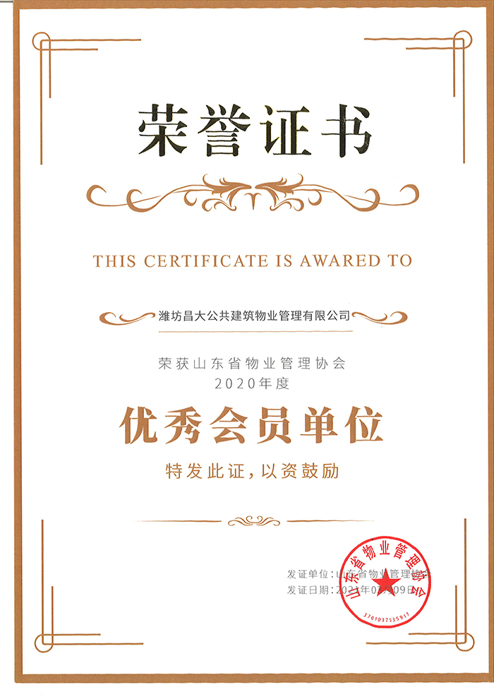 2023年度山東省物業(yè)管理協(xié)會(huì)優(yōu)秀會(huì)員單位證書(shū)