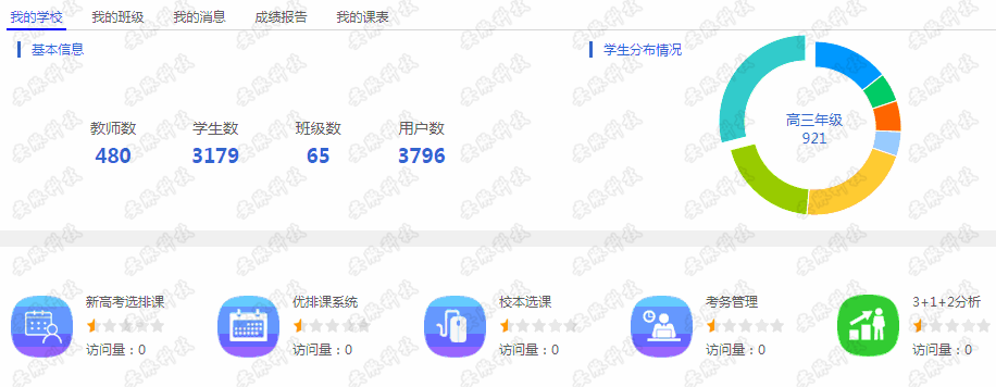 以管理組成員的身份登錄后,進入管理平臺主頁,顯示登錄人,學?;拘畔ⅲ谓糖闆r,學校成績報告、教師個人課表、快捷應用入口、基礎(chǔ)信息、系統(tǒng)管理等與登錄個人的相關(guān)信息。