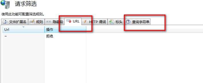 2:針對IIS6.1以上版本,由于內(nèi)部默認(rèn)集成篩選器過濾。請在IIS服務(wù)器跟節(jié)點 功能視圖中 找到 請求篩選 URL 和 查詢字符串中 添加 ~ * 等字符